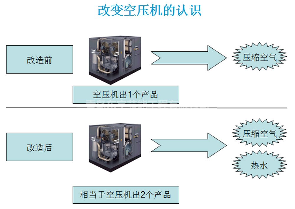 2、空压机节能:可以换热成热水洗澡、采暖用途,也可以用热泵提取到80摄氏度左右的热水用于低温烘房。