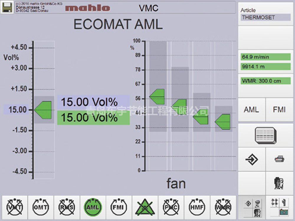 定型机排潮自动控制装置,根据不同的布料,设置不同的排湿湿度,湿度设定值控制排湿风机频率,正常节能在15-20%之间。